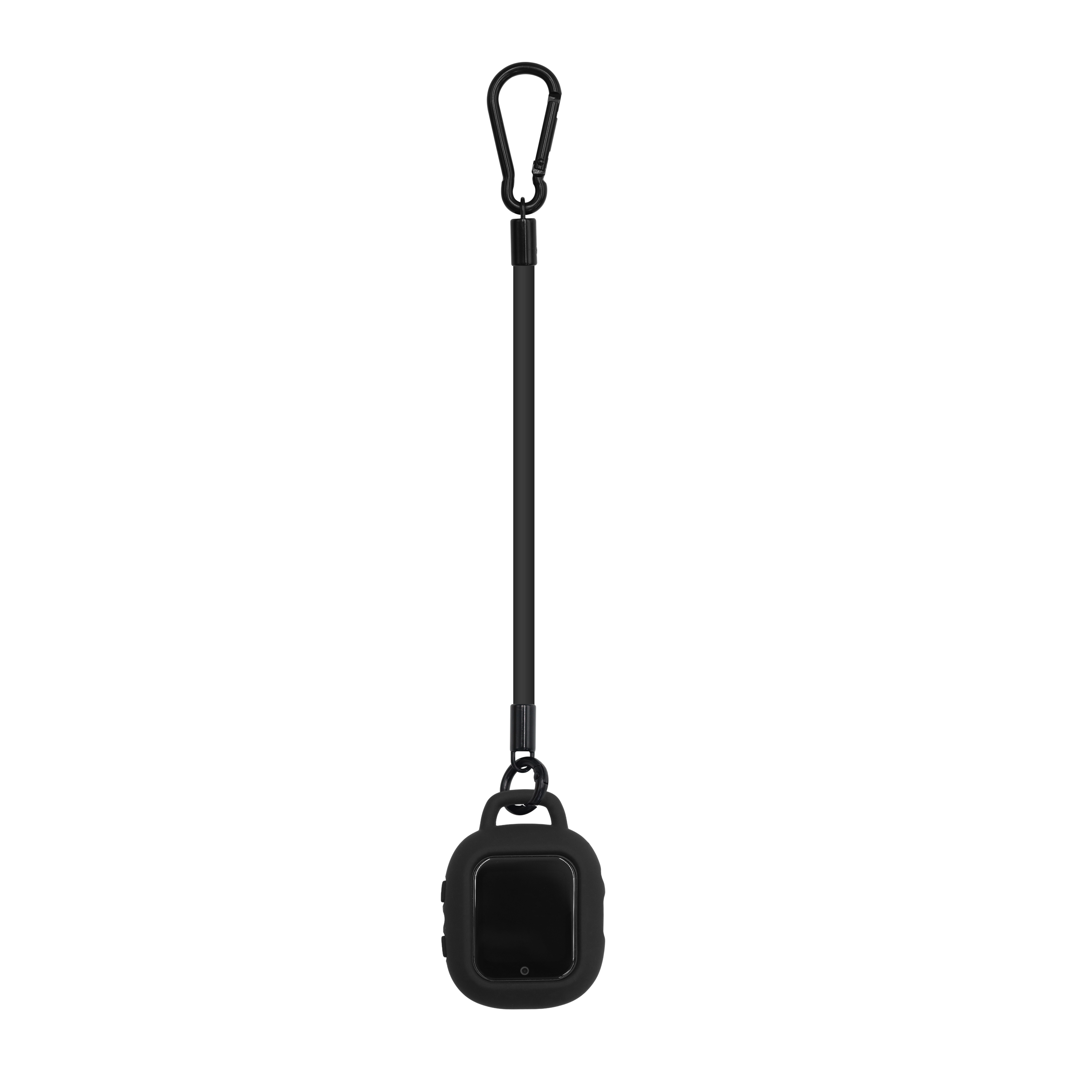 Thick silicone case protector and matching lanyard. It can be clipped to back pack or conveniently slipped into a pocket. Solid metal carabiner.